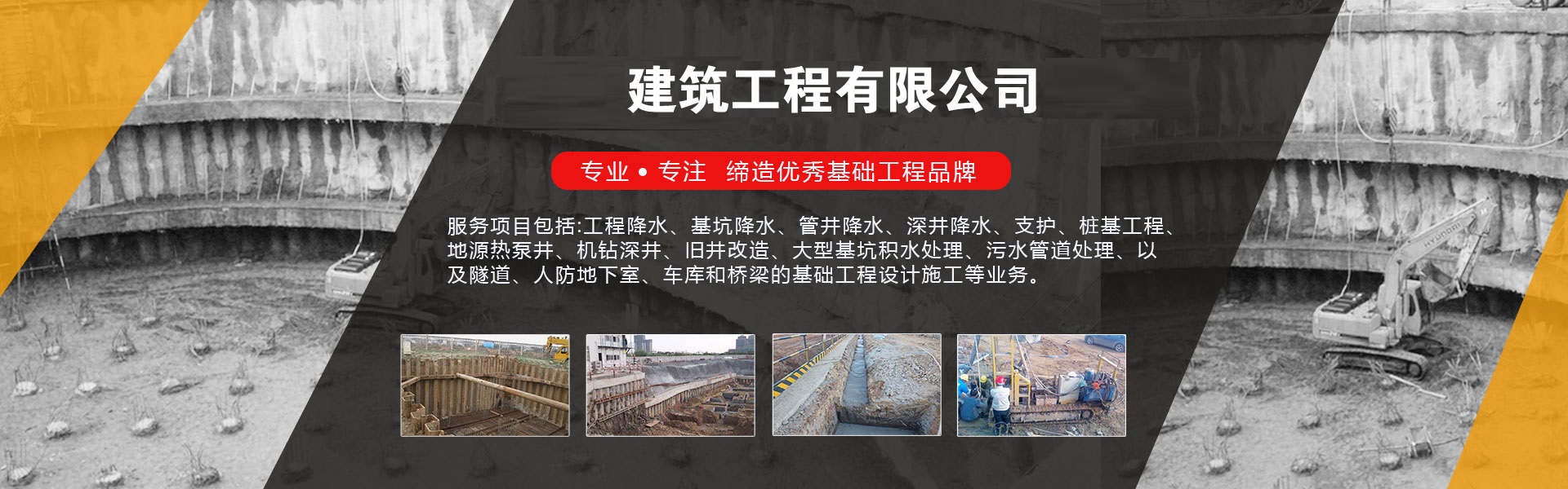 建筑工程有限公司專業從事基礎工程施工建設超過十余年,技術實力過硬。現在為經濟實力雄厚、裝備配套能力強、重合同、守信用的施工企業。公司主要承接全國各種地基與基礎工程項目,服務項目包括:工程降水、支護、樁基工程、地源熱泵井、機鉆深井、舊井改造、大型基坑積水處理、污水管道處理、以及隧道、人防地下室、車庫和橋梁的基礎工程設計施工等業務。公司在發展主干業務的同時,憑借累積起來的十幾年良好信譽和實力,積極擴展業務領域,先后在安徽、江蘇、浙江、山東、江西等地承接基礎工程,在陌生的水文地質情況下,根據多年的工程實踐經驗,設計科學、合理的施工方案,施工中采取靈活、機動的操作技巧并配有相應的補救措施方案。近年來,經過我們的不斷努力,成功完成了多項